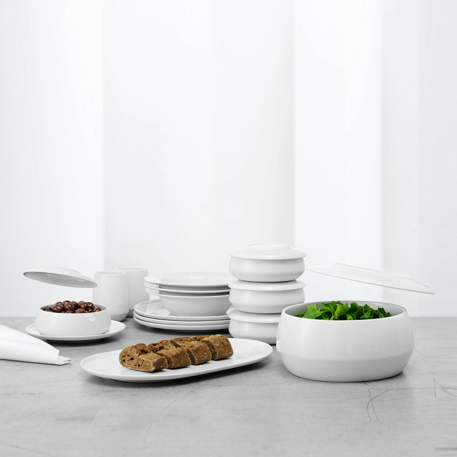 Einer stilvoller tiefer Teller von Aida mit praktischem Design aus der Enso-Serie. Enso Teller können gestapelt werden, sodass sie wenig Platz in deinem Zuhause beanspruchen. „Enso“ ist Japanisch und bedeutet Kreis. Somit sind die Produkte ein Symbol für Freiheit, Kreativität und Eleganz. Hinter der Serie steht das berühmte Architekturbüro C.F. Møller.