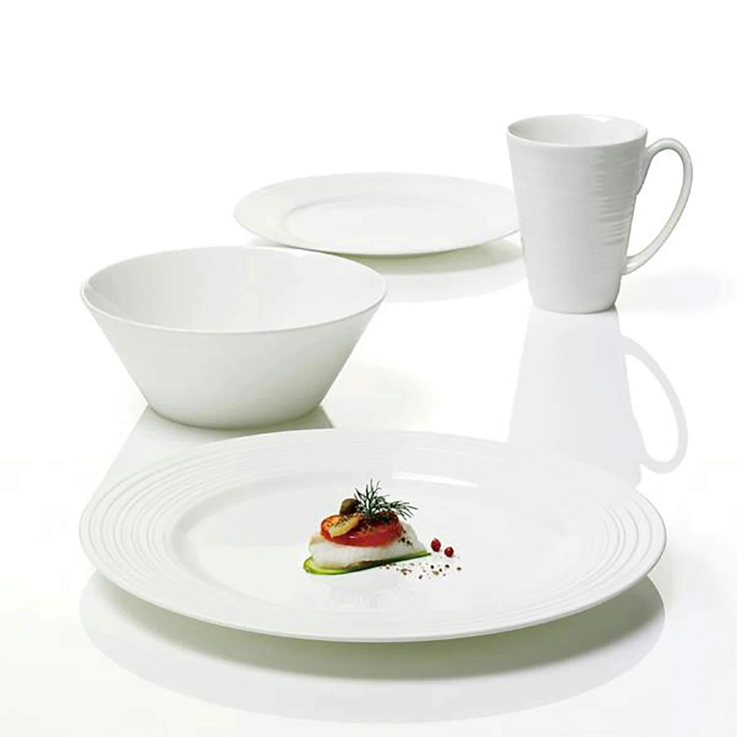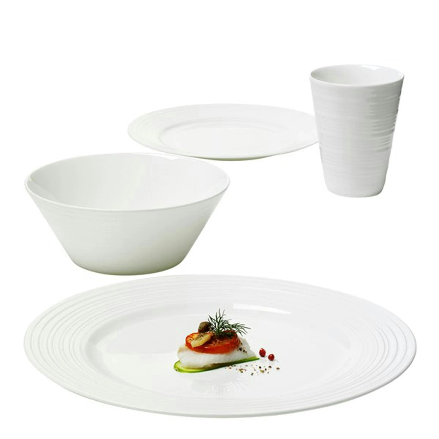 Die Essgeschirr Leidenschaft mit 16 Stück von Aida hat ein minimalistisches Design, das alle Arten von Tabelleneinstellungen paßt. Die Stücke in dem Essgeschirr sind mit einem cremefarbenen und seidig Glasur aus Bone China. Das Geschirr ist perfekt für die täglichen Gebrauch, da es sowohl für Spülmaschine und Mikrowelle ist, und Backofen und Gefrierschrank fest. Das Essgeschirr beinhaltet: 4 Tassen 4 Speiseteller 4 Kleine Platten 4 Servierschüsseln