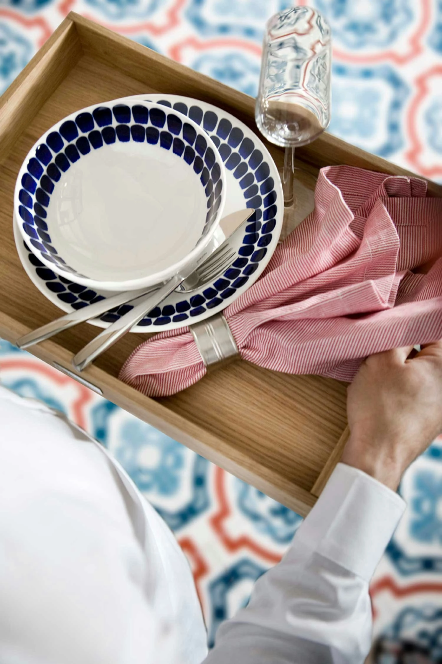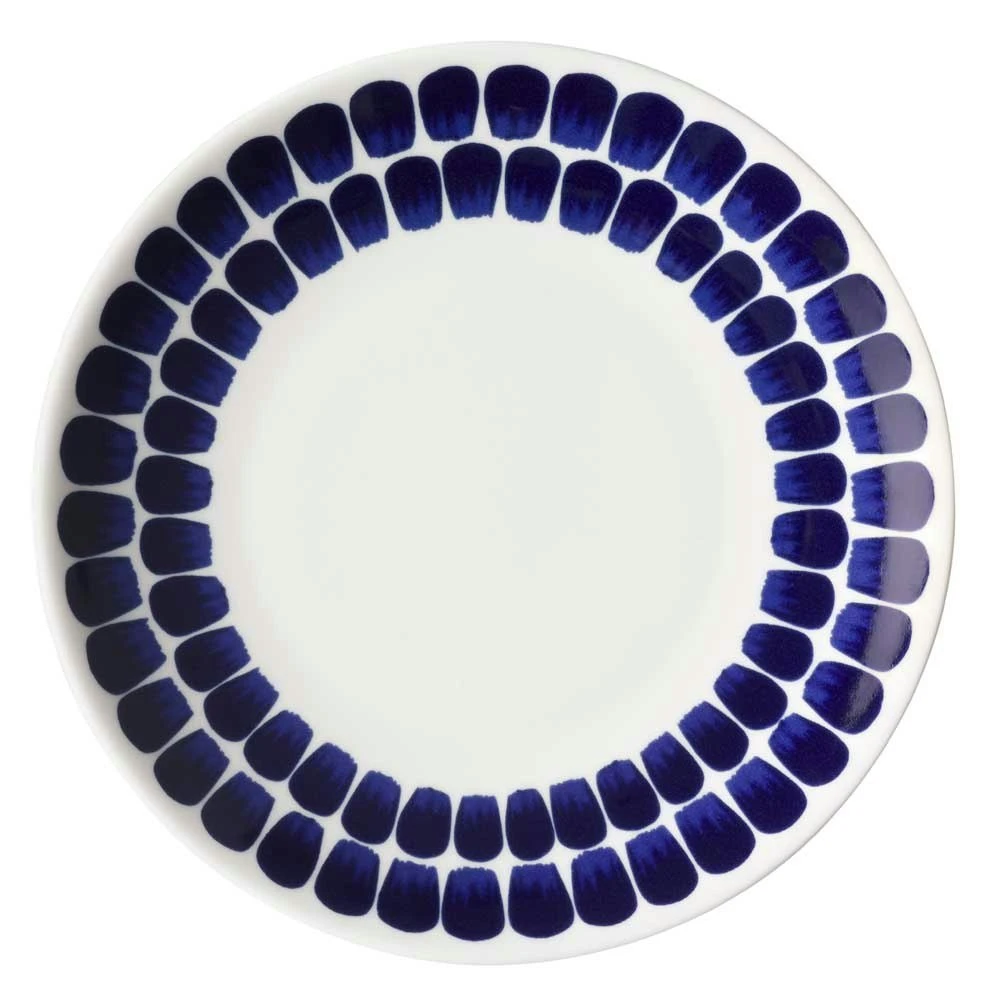 Teller von Arabia. Dieser Teller gehört zur beliebten 24-Stunden-Tuokio-Serie, die sich durch zeitloses Design und das ikonische blau-weiße Muster auszeichnet. Das Muster ist von der 140-jährigen Geschichte Arabias inspiriert und vermittelt ein Gefühl für handgemalte Pinselstriche. Es ist das finnische Duo Helorinne und Kallio, das die 24-Stunden-Serie von Heikko Orvala interpretiert haben. Der Name 24h kommt von der Tatsache, dass der Teller zu jeder Tageszeit verwendet werden kann.