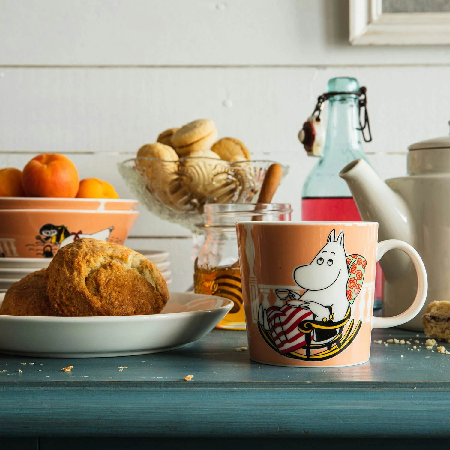 Arabias neues Mumin Motiv stammt aus den Serien Muminvinter (1959) und Låtsaslek (1965). Das Motiv zeigt Mumin Mama, die, zusammen mit Klein My, im Garten arbeitet und Mumin Mama, als sie etwas Zeit für sich selbst nimmt und eine Tasse Kaffee genieß. Die Originalzeichnungen stammen von Tove Jansson, das Design ist von Tove Slotte. Es gibt auβerdem eine Schüssel und einen Teller mit dem neuen Mumin Motiv. Die Mumin-Serie von Arabia wurde inspiriert von Tove Janssons klassischen Geschichten über die Mumintrolle.