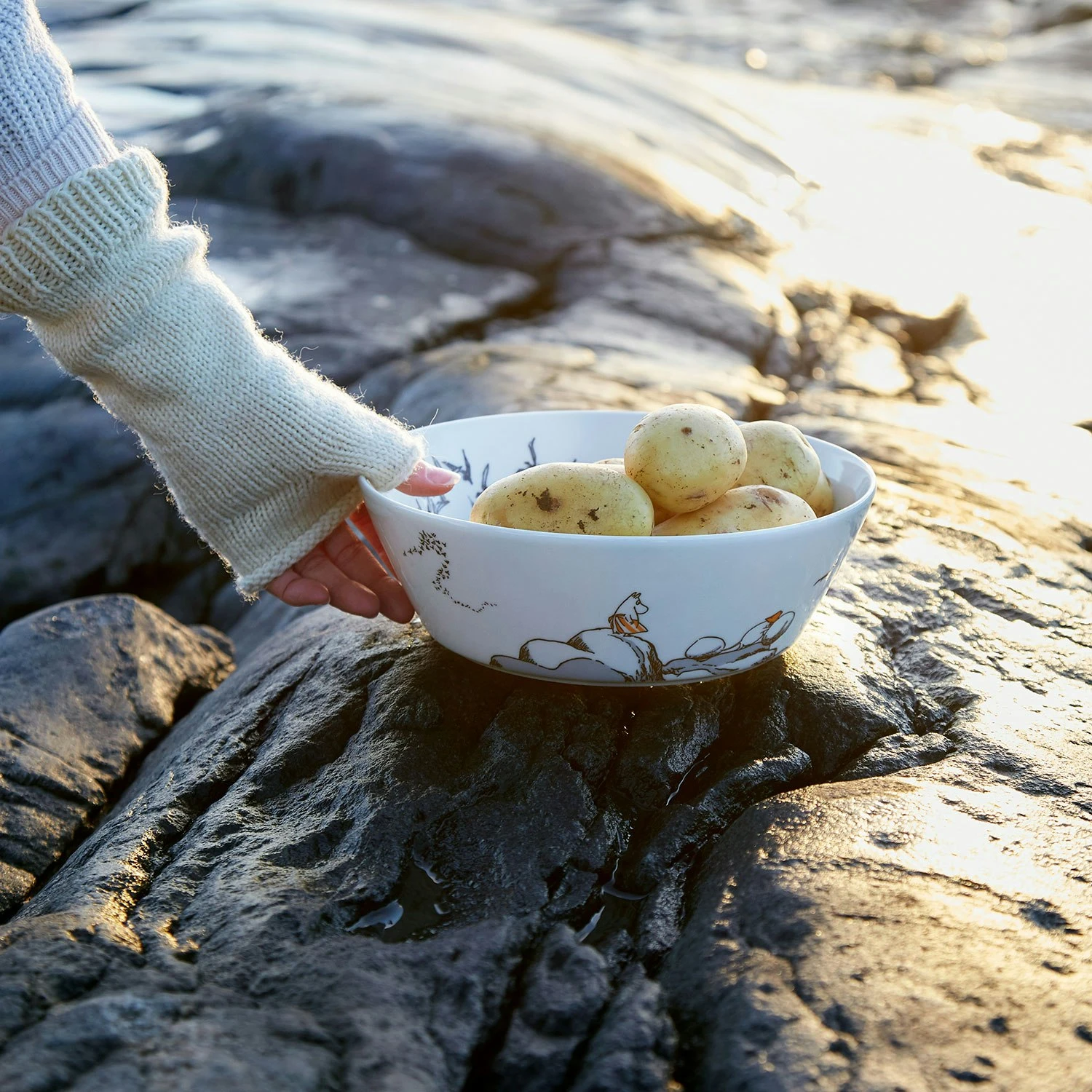Servierschüssel von Arabia. Eine verspielte Servierschüssel mit Motiven aus Tove Janssons Geschichten von Mumin und seinen Freunden im Mumintal. Salate oder Obst, zum Beispiel, essen sich noch besser aus dieser Schüssel und bereitet Spaß für Klein und Groß. Gut kombinierbar mit Produkten der selben Kollektion.