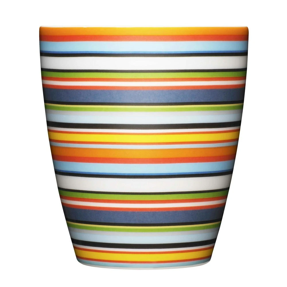 Ein Becher aus der Origo Serie mit einem bunten und Streifenmustern gekennzeichnet, die für alle Gelegenheiten im Alltag eingesetzt werden kann. Seine Fähigkeit, fix Tassen und Schalen auf Untertassen und Teller macht die Serie sehr functional.Winner 2002 iF Design Award.