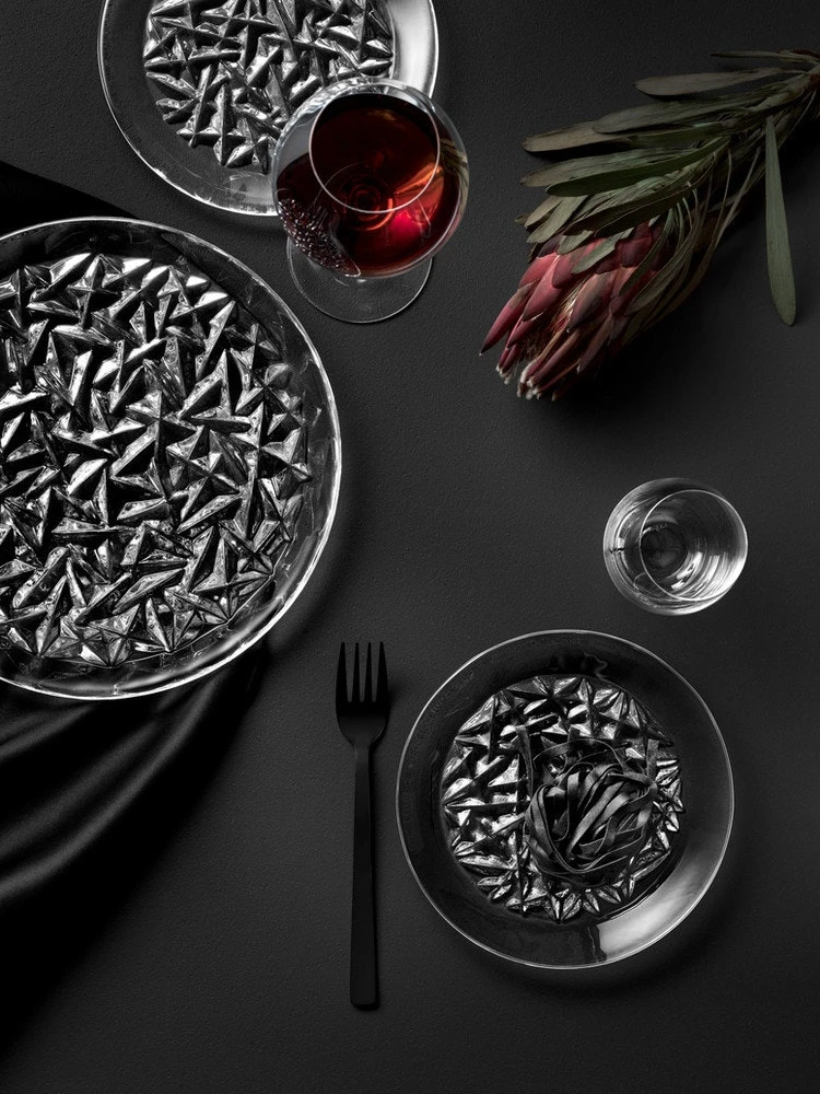 Dieser elegante Teller von Orrefors gehört zu der beliebten Carat Glasserie, die von Juwelen und Edelsteinen inspiriert wurde. Ihre Designerin Lena Bergström will durch die ausgeprägte und asymmetrische Formgebung unsere Zeit widerspiegeln. Der Teller eignet sich gut für festliche Anlässe und ergänzt jedes Gedeck.