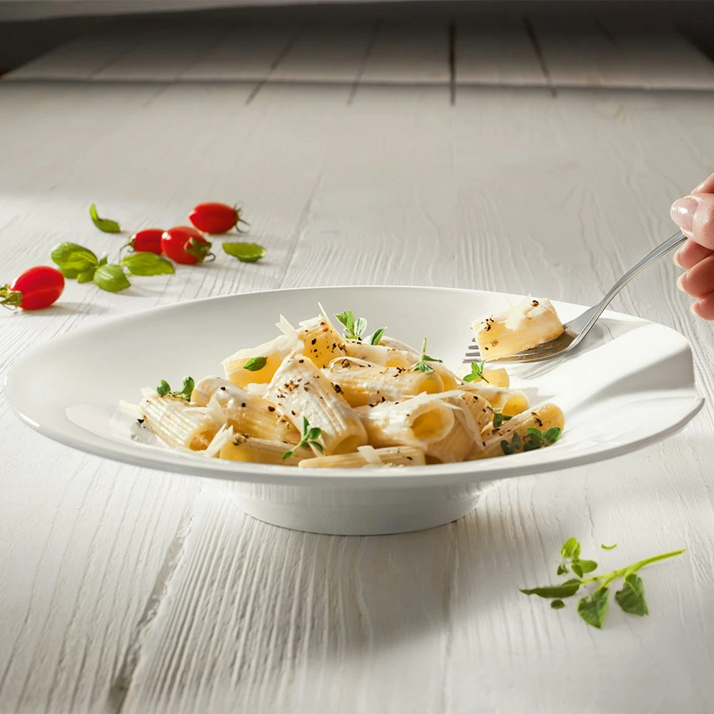 Pastateller von Villeroy & Boch. Diese Platte dreht Pasta, von Lasagne Spaghetti, in das ultimative Vergnügen. Das Chip beständiges Premium Porzellan ist spülmaschinenfest und mikrowellengeeignet. Diese Platten sind perfekt für den Genuss leckere Pasta auf dem Tisch oder auf dem Sofa dank ihrer cleveren Form. Die anspruchsvolle Gestaltung des Innenraums der Plattenmittel brauchen Sie nicht einen Löffel Ihre Pasta zu essen. Verkauft in Zweierpack.